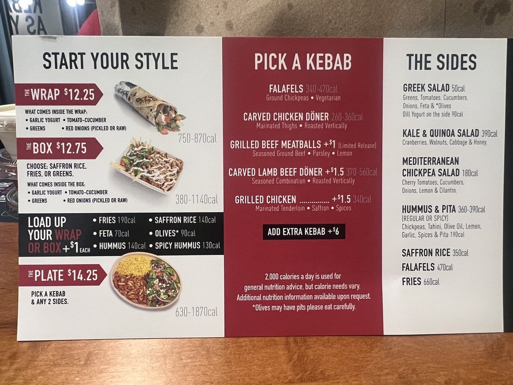 Carved Lamb Beef, Pickled Onions, Fries, Feta, & Standard Fillings. 1240cal