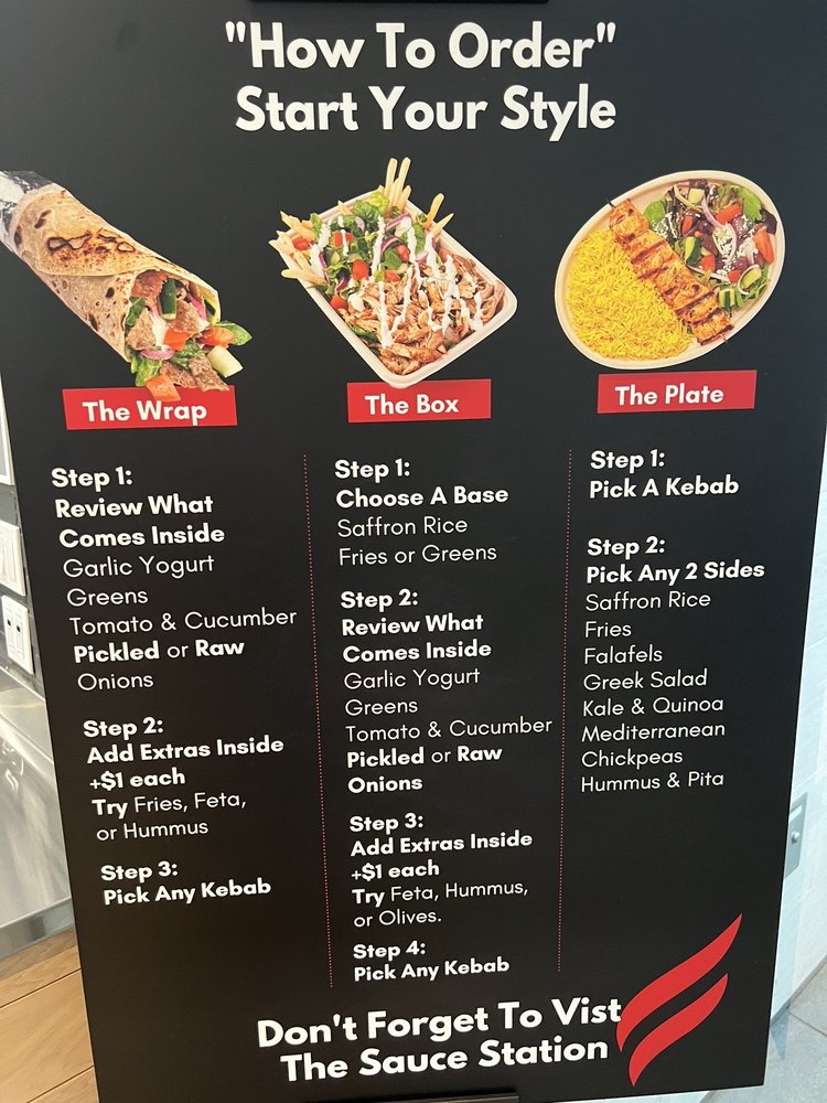 Comes with Garlic Yogurt, Greens, Tomato-Cucumber, and Pickled or Raw Onions.
